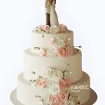 Большой свадебный торт с розами и фигурками жениха и невесты