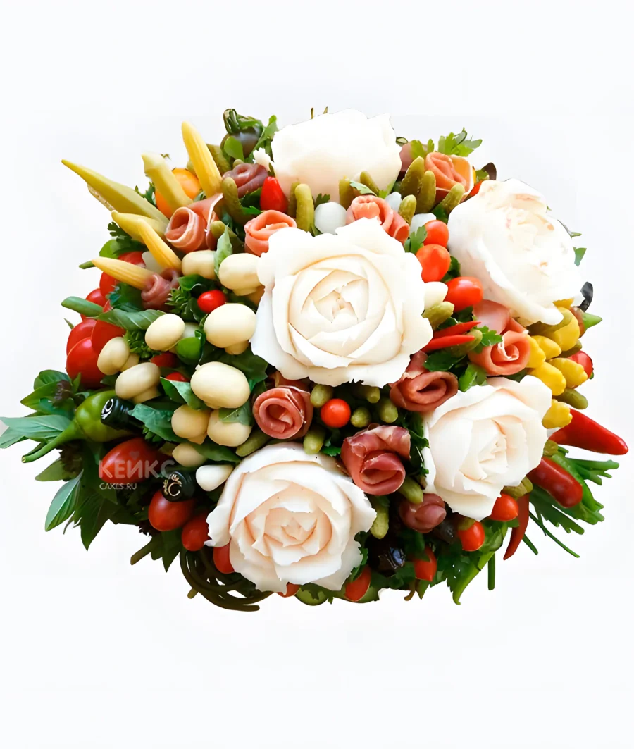 сало, цветы, томаты, колбаса, алкоголь , зелень