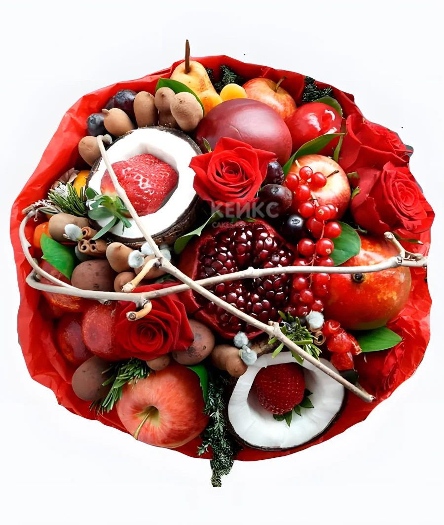 гранат, клубника, цветы, яблоки, груша, кокос , корица