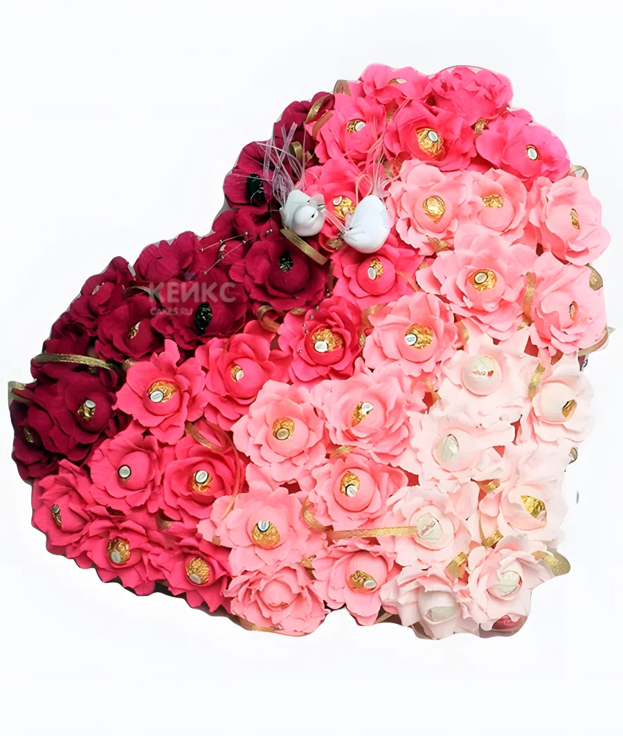 Букет с конфетами в виде сердца 3
