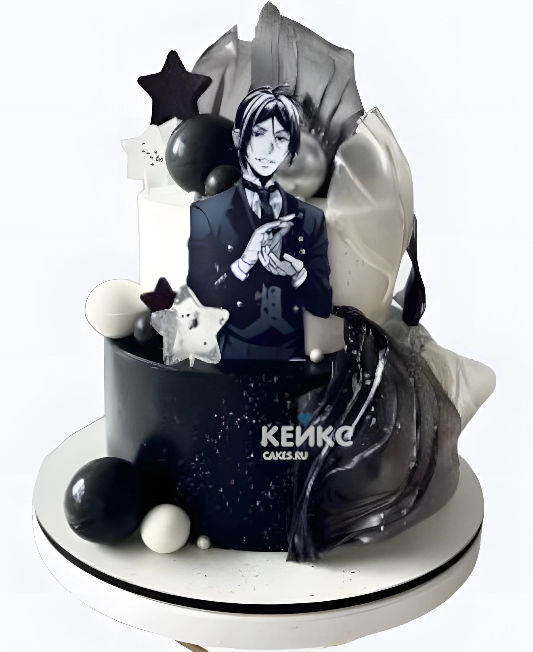 Черно-белый торт на день рождения аниме Темный дворецкий