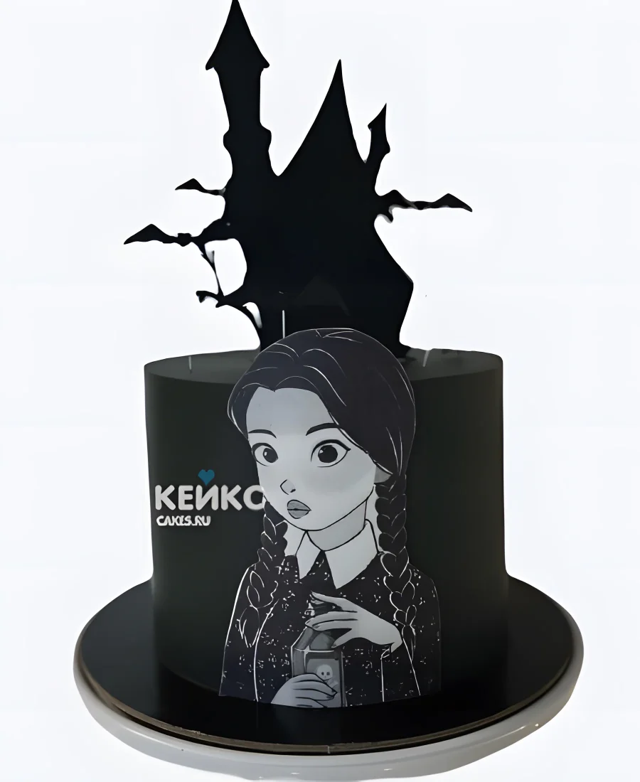 Черный необычный торт Венсдей