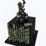 Этот торт — настоящий цифровой арт-объект! Глубокий матовый черный фон создает эффект бесконечного кода, а яркие белые цифры из мастики будто парят в космосе. Геометричная форма и контрастная палитра напоминают интерфейс хакерской программы. Каждый элемент расположен с математической точностью, словно пиксели на экране. Строгие линии и лаконичный дизайн передают дух IT-сферы, превращая десерт в стильный аксессуар для tech-вечеринки.