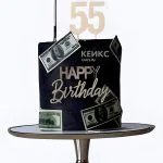 Черный торт с долларами на юбилей 55 лет