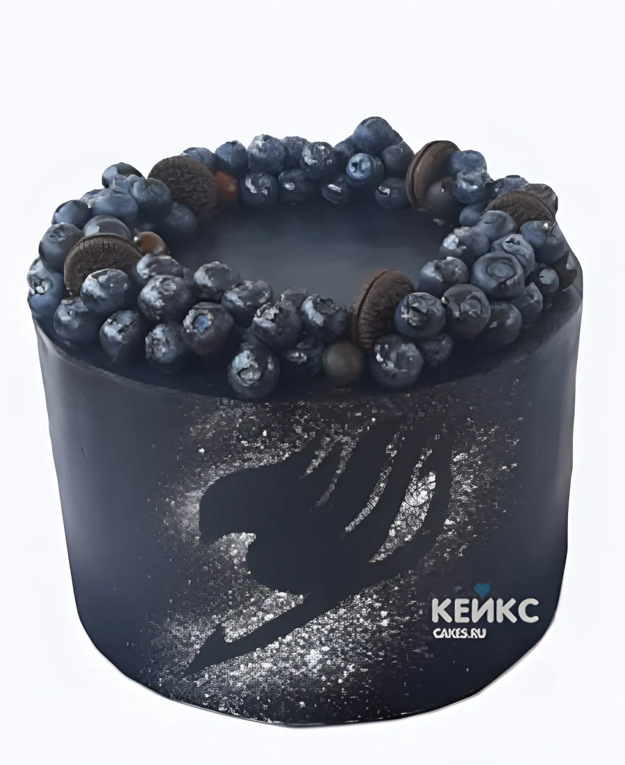 Черный торт с голубикой и печеньем на день рождения аниме Хвост Феи