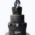 Черный трехъярусный торт на день рождения аниме Темный дворецкий