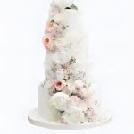 Белый торт с красивыми цветами