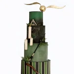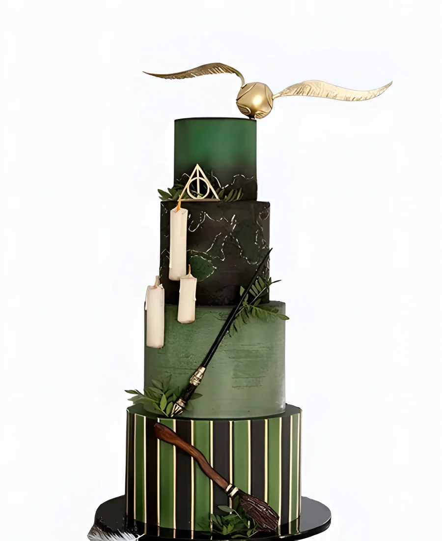 Чудесный зеленый тортик с свечами в стиле Слизерин из Гарри Поттера