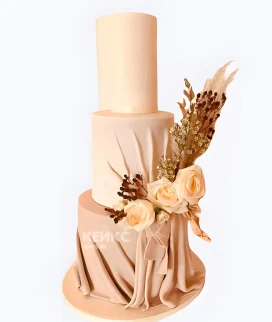 Бежевый свадебный торт с сухоцветами