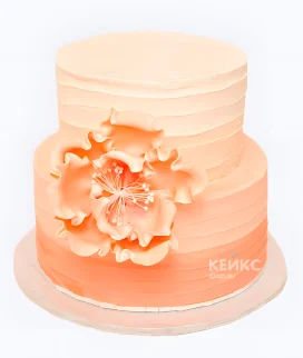 Свадебный торт персикового цвета рифленый с цветком Фото Заказать