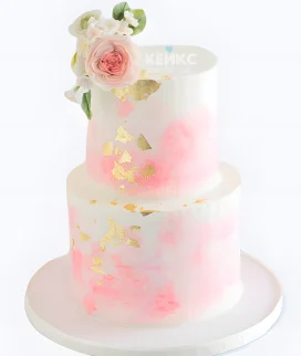 Розовый свадебный торт Золотые разводы Фото Заказать