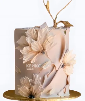 Бежевый свадебный торт Эффектные цветы Фото Заказать