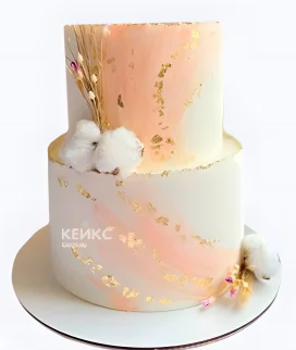 Розовый свадебный торт с хлопком и веточками Фото Заказать