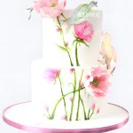 Нежный двухъярусный торт в пастельных тонах, украшенный искусными цветами из мастики. Верхний ярус выполнен в нежно-розовых оттенках, нижний — в кремовых, с тонкими золотистыми акцентами. Цветы разных размеров и форм создают ощущение весеннего сада. Легкие завитки и полупрозрачные лепестки добавляют торту воздушности. Композиция выглядит гармонично и элегантно, словно букет, подаренный с любовью.