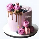 Цветочный торт с карамельными подтеками и ягодами на 70 лет