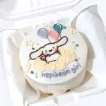 Нежный круглый торт в пастельных тонах украшен очаровательной композицией: пушистый кролик сладко спит на воздушном облачке из крема. Мягкие перламутровые брызги создают волшебную атмосферу, а нежные розовые и голубые оттенки переливаются под светом. Эта сказочная сценка наполнена уютом и детской мечтательностью, словно сошедшая со страниц любимой книжки.
