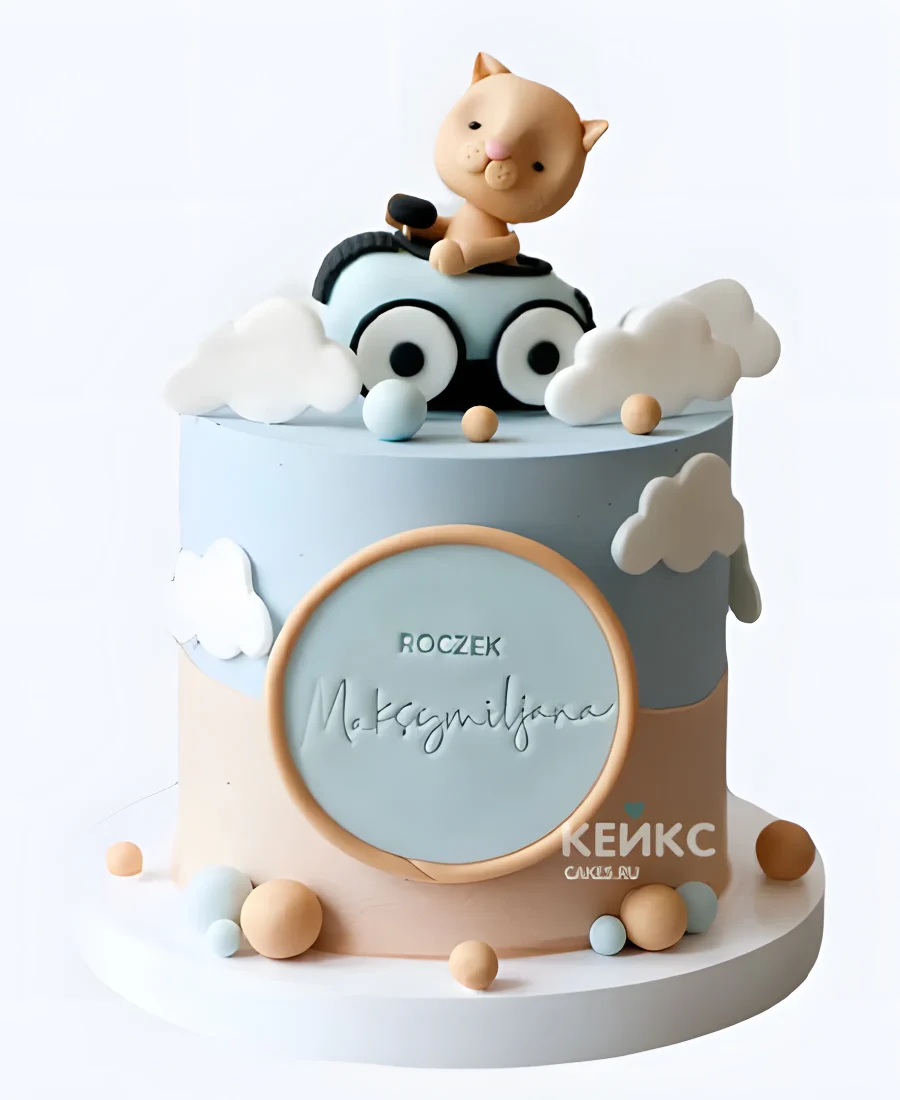 Детский торт с мастикой с милым котиком