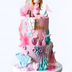 Детский торт с мастикой в виде подводного мира с русалочкой