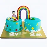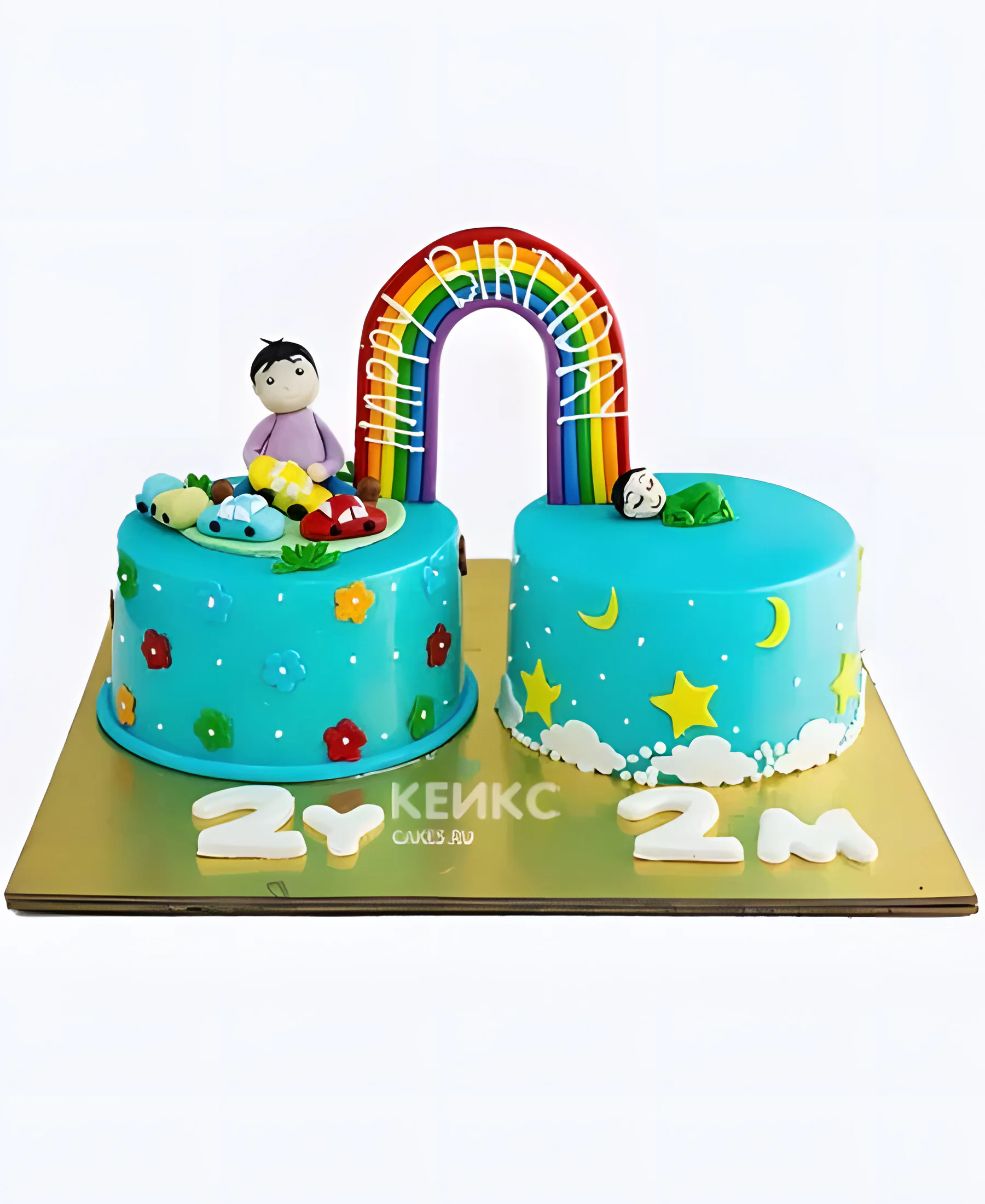 Два тортика на два годика для мальчиков с радугой и фигурками