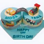 Два тортика на первый день рождения двойняшек с машинкой и паровозиком