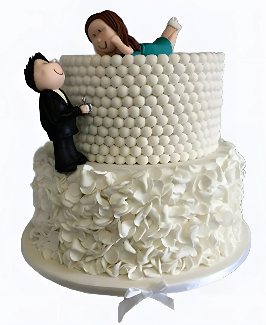 Двухъярусный торт с фигурками влюбленных на сватовство
