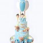 Двухъярусный голубой тортик для двойняшек