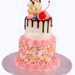 Двухъярусный розовый торт девочке с вишней