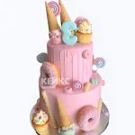Двухъярусный розовый торт на 3 года девочке со сладостями