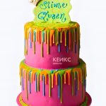 Двухъярусный слайм торт для девочки с короной