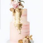Двухъярусный свадебный торт без мастики с золотом и цветами из мастики
