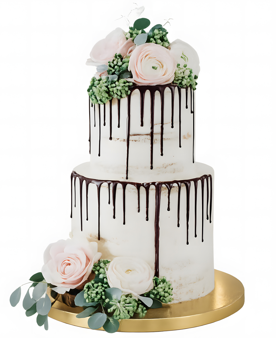 Торт свадебный двухъярусный без мастики с розами и шоколадом