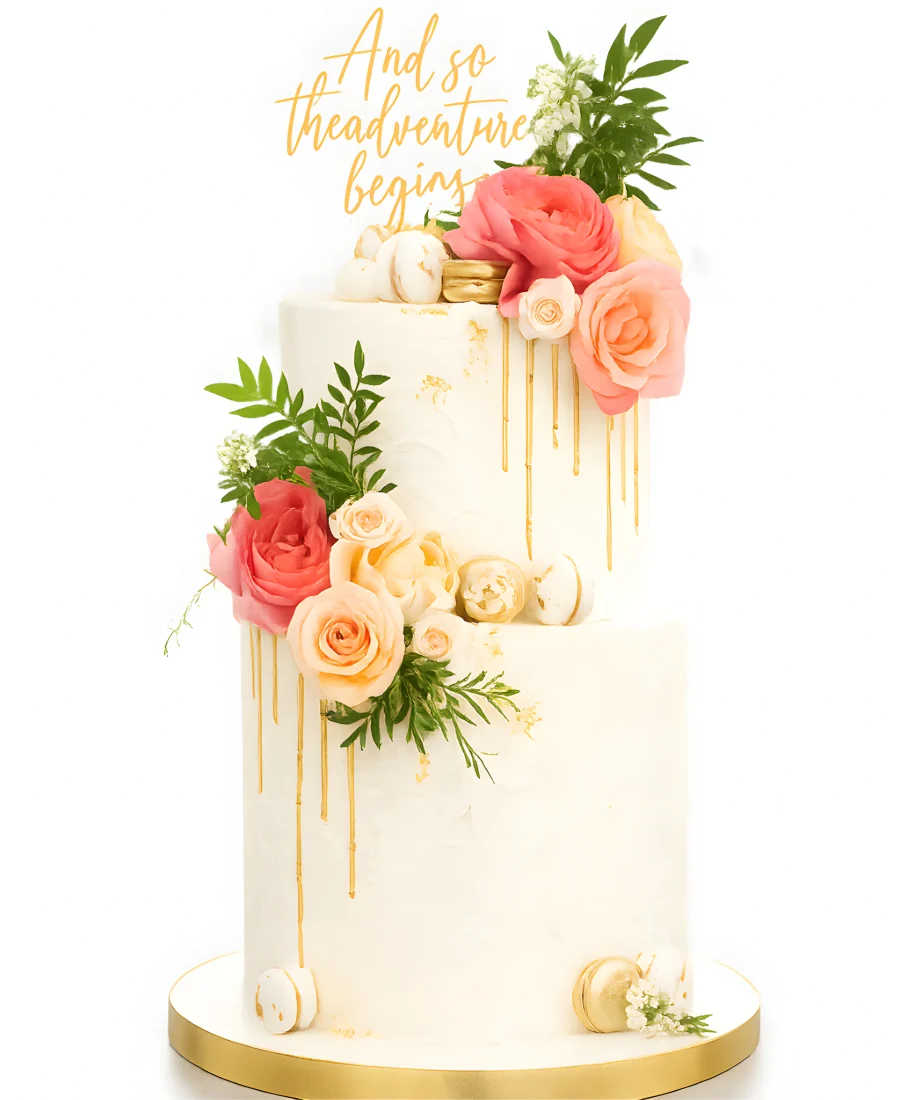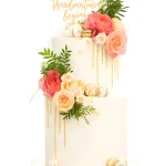 Двухъярусный свадебный торт без мастики с зеленью и топпером