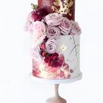 Двухъярусный свадебный торт без мастики с цветами и золотыми узорами