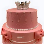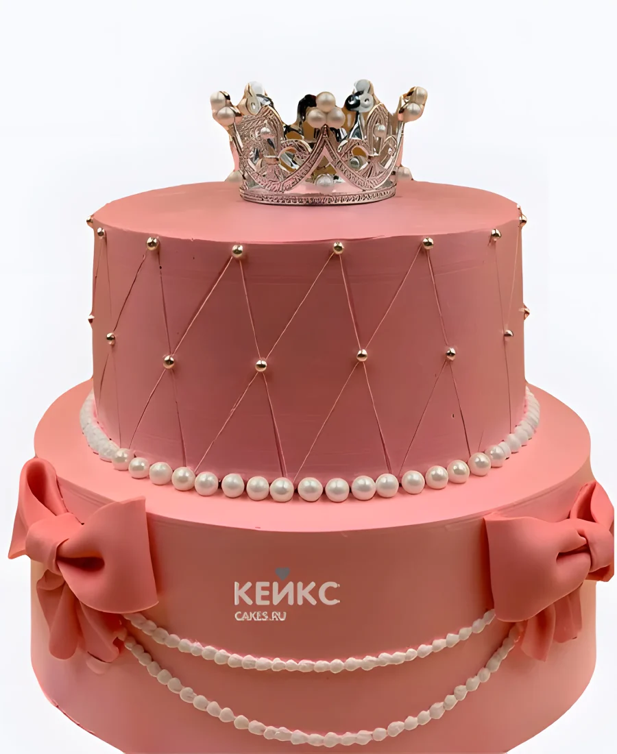 Двухъярусный торт девочке с короной и бантиками