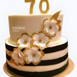 Двухъярусный торт на юбилей 70 лет с цветами
