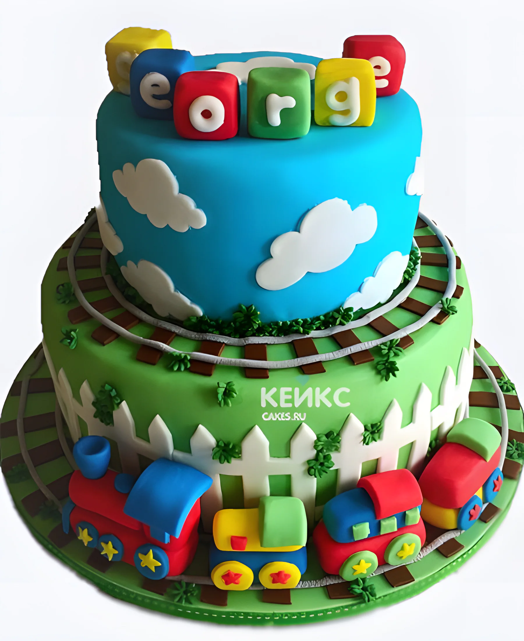 Двухъярусный торт паровозик с кубиками