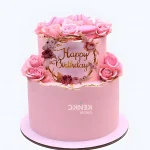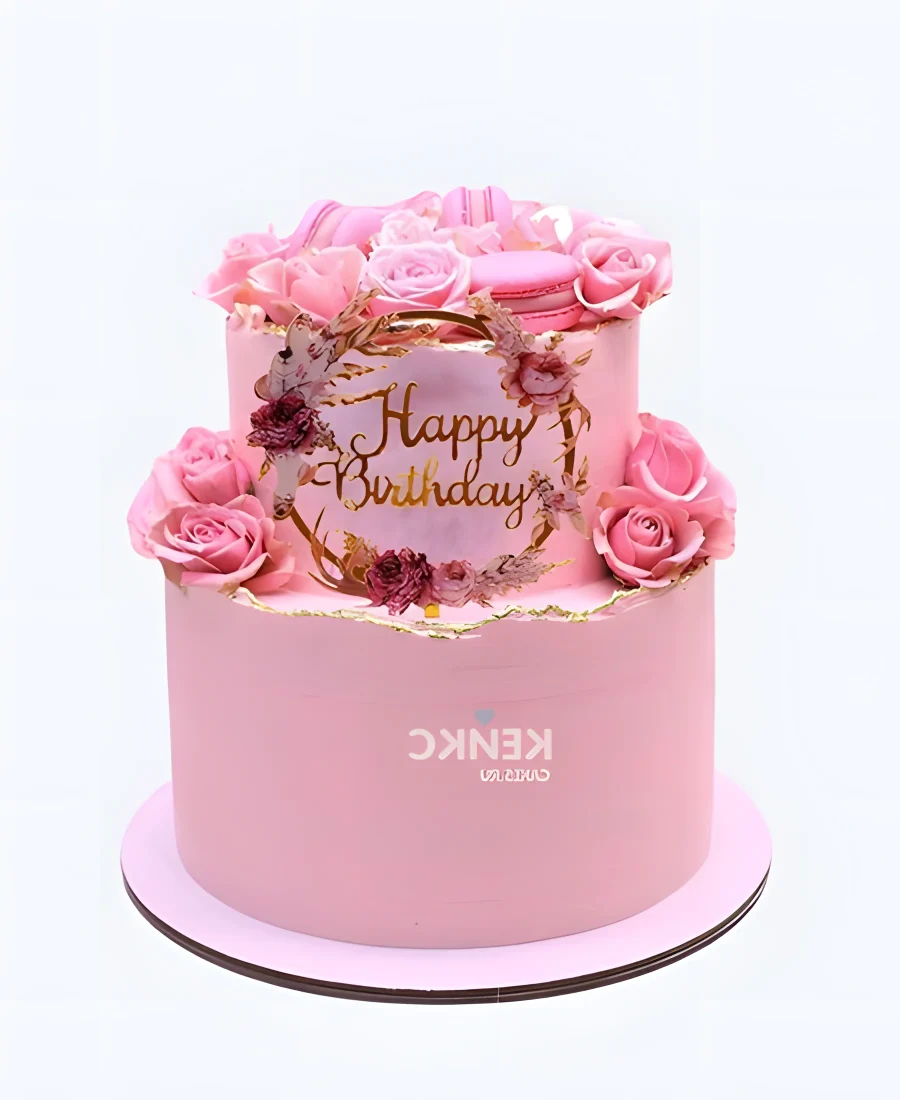 Двухъярусный торт с надписью и розами