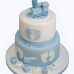 Двухъярусный торт с поездом на рождение ребенка скоро буду