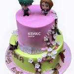 Торт с сакурой и фигурками из аниме Моя геройская академия