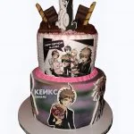 Двухъярусный торт с шоколадом на день рождения аниме Данганронпа