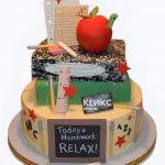 Двухъярусный торт в 11 класс с книгами и яблоком
