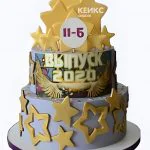 Двухъярусный торт в 11 класс со звездами и фотопечатью