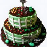 Двухъярусный зеленый торт огород с овощами из мастики
