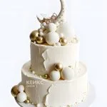Этот воздушный двухъярусный торт словно сошел со страниц сказки. Нежные кремовые волны создают ощущение легкости, а яркие шарики, будто капли росы, добавляют торту игривости. Белоснежная основа гармонично сочетается с пастельными оттенками розового и голубого, создавая нежный и романтичный образ. Каждый ярус украшен изящными завитками, которые придают торту особую торжественность. Этот торт — настоящее воплощение праздника и радости.