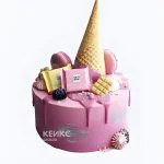 Этот яркий торт словно создан для праздничного настроения! Нежно-розовая основа с воздушными кремовыми рюшами выглядит по-настоящему по-детски. Верх украшен карамельными палочками, мармеладными конфетами и зефирками, которые создают веселый хаос. Золотистые блестки и цифра «10» из мастики добавляют торжественности. Кажется, будто это не просто десерт, а маленькая страна сладостей, где царит радость и беззаботность.