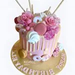 Эффектный торт девочке на 11 лет со сладостями и цветами