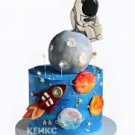 Эффектный торт мальчику на 7 лет с луной и ракетой