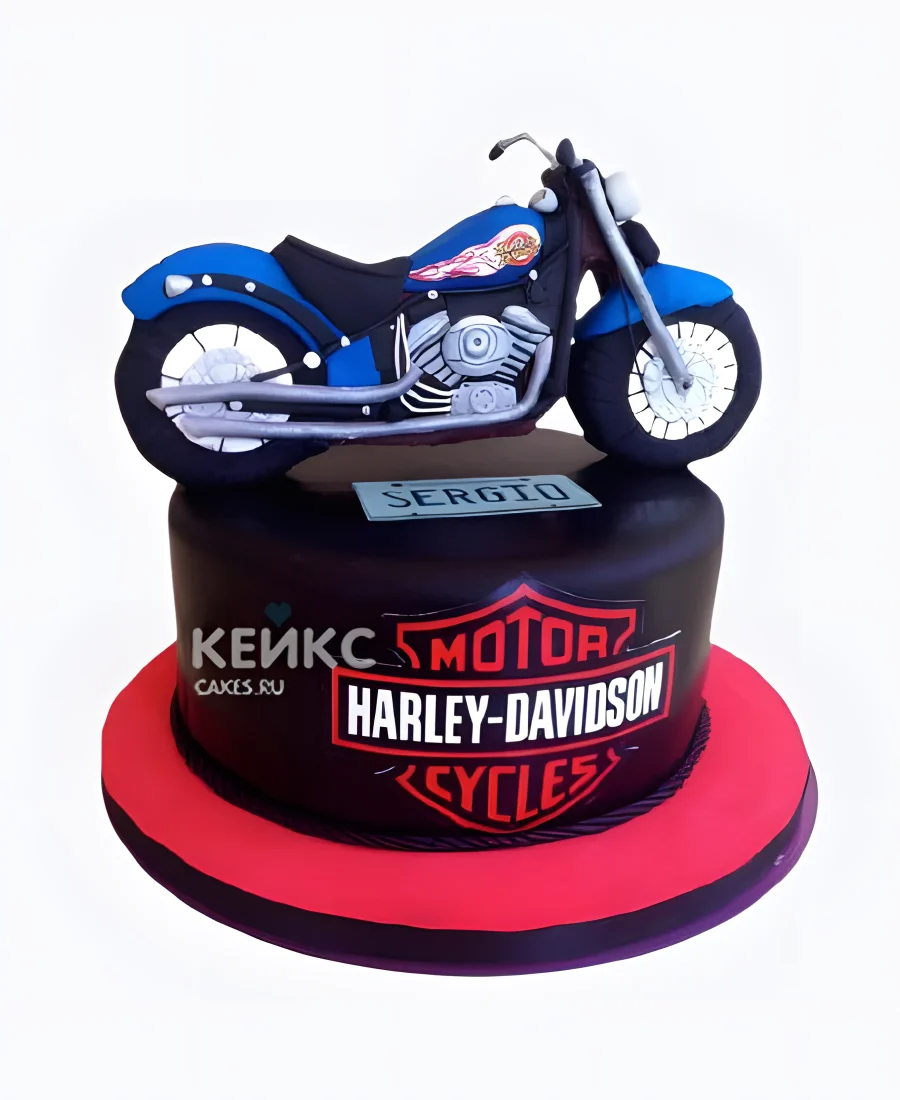 Эффектный торт мужчине на день рождения с фигуркой мотоцикла