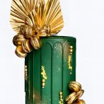 Эффектный торт в изумрудном цвете с золотыми макарунс