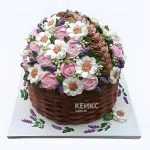 Эффектный торт женщине на 65 лет в виде корзины с цветами